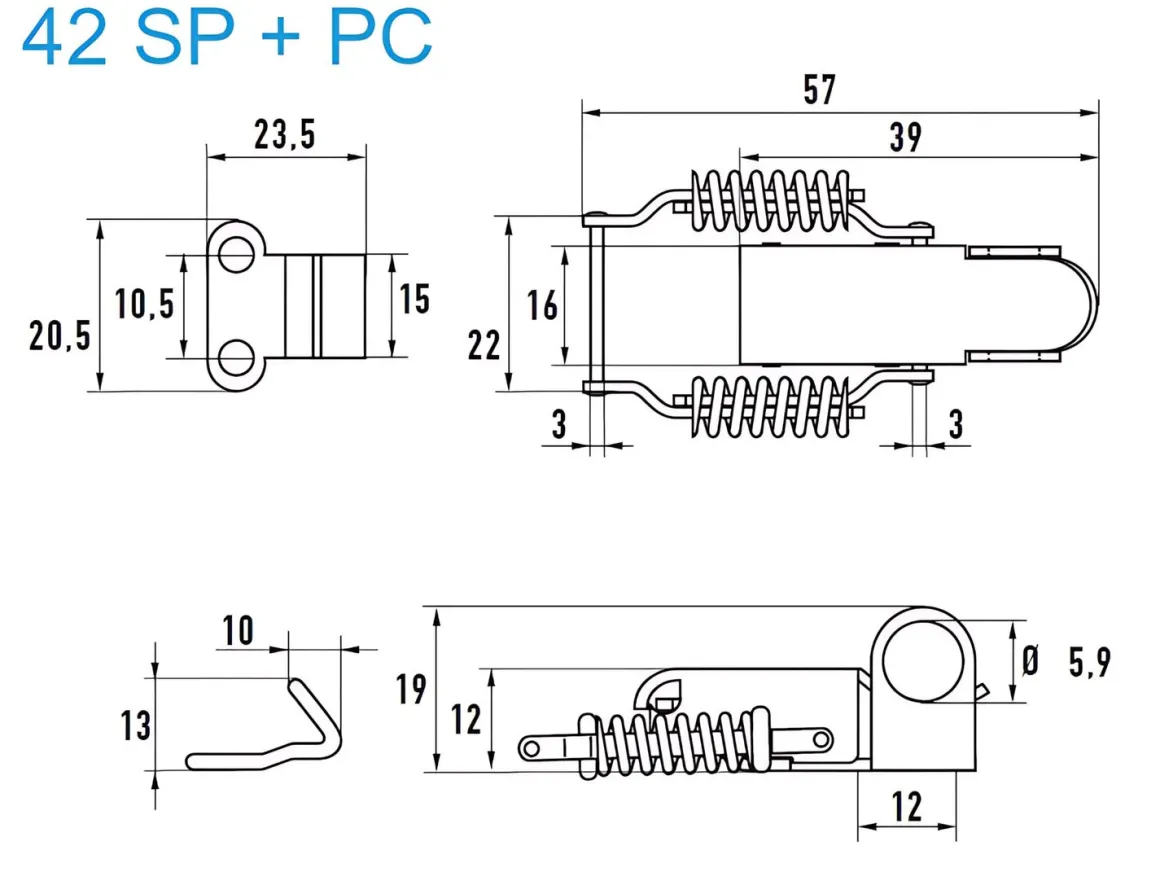 Spannverschluss mit Verschlussvorrichtung Stahl verzinkt 42 SP + PC kleines Kappenschloss mit Feder Verschlussvorrichtung gerader Grundtplatte und Gegenhaken – Kistenverschluss – Kofferverschluss – Hebel Verschluss
