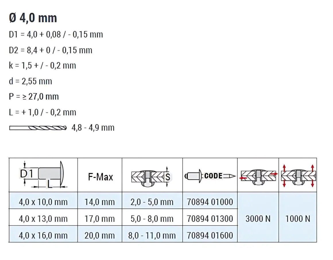 | Nietdorn Durchmesser (d) | 2.55 mm |